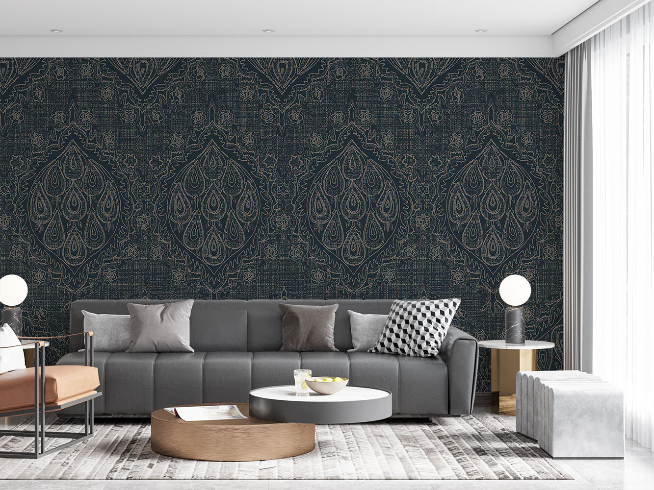 - در پذیراییهای بزرگ، استفاده از طرح داماسک طلایی یا نقرهای روی زمینه تیره، جلوهای مجلل و سلطنتی ایجاد میکند.