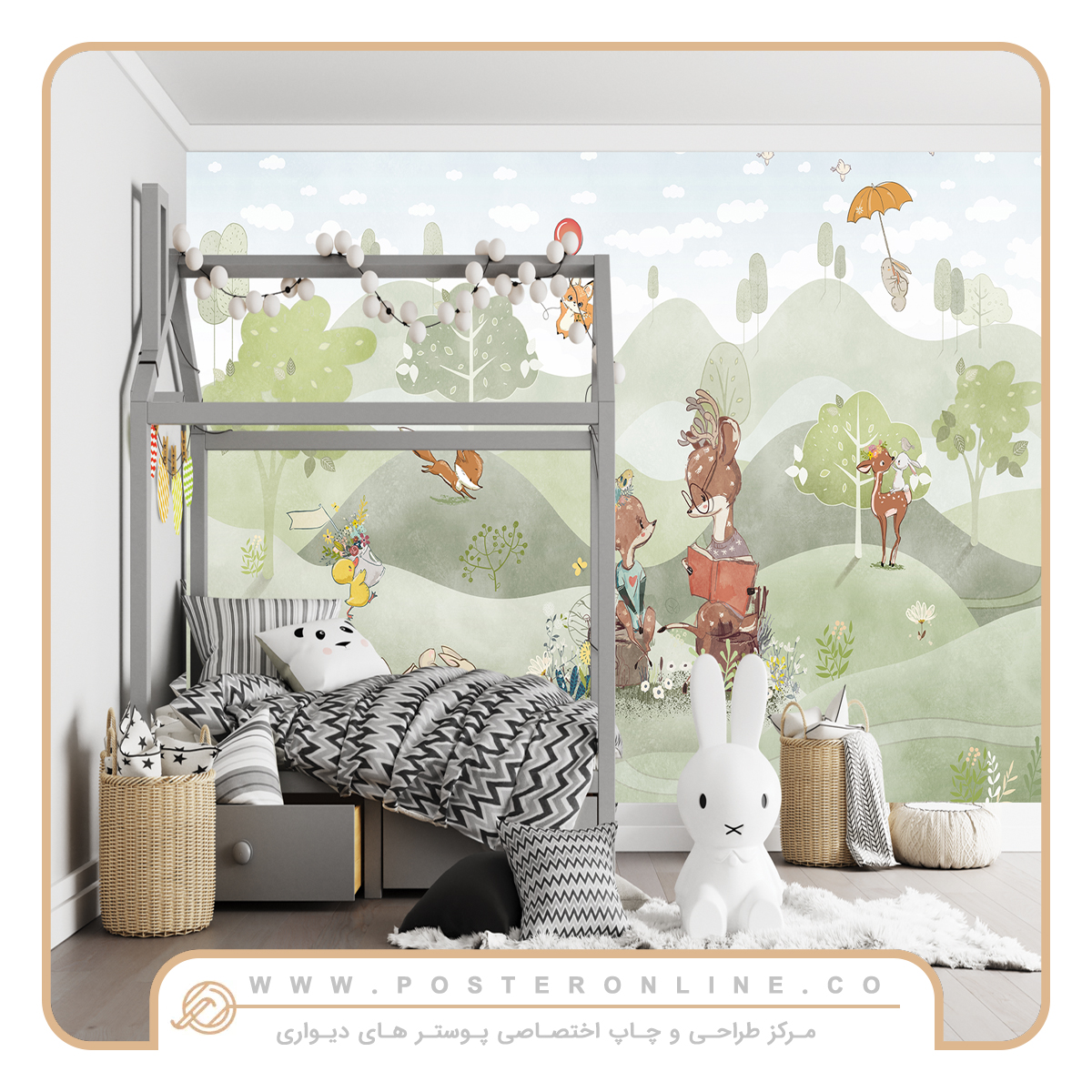 پوستر دیواری اتاق کودک طرح سه بعدی حیوانات کد dt-1013