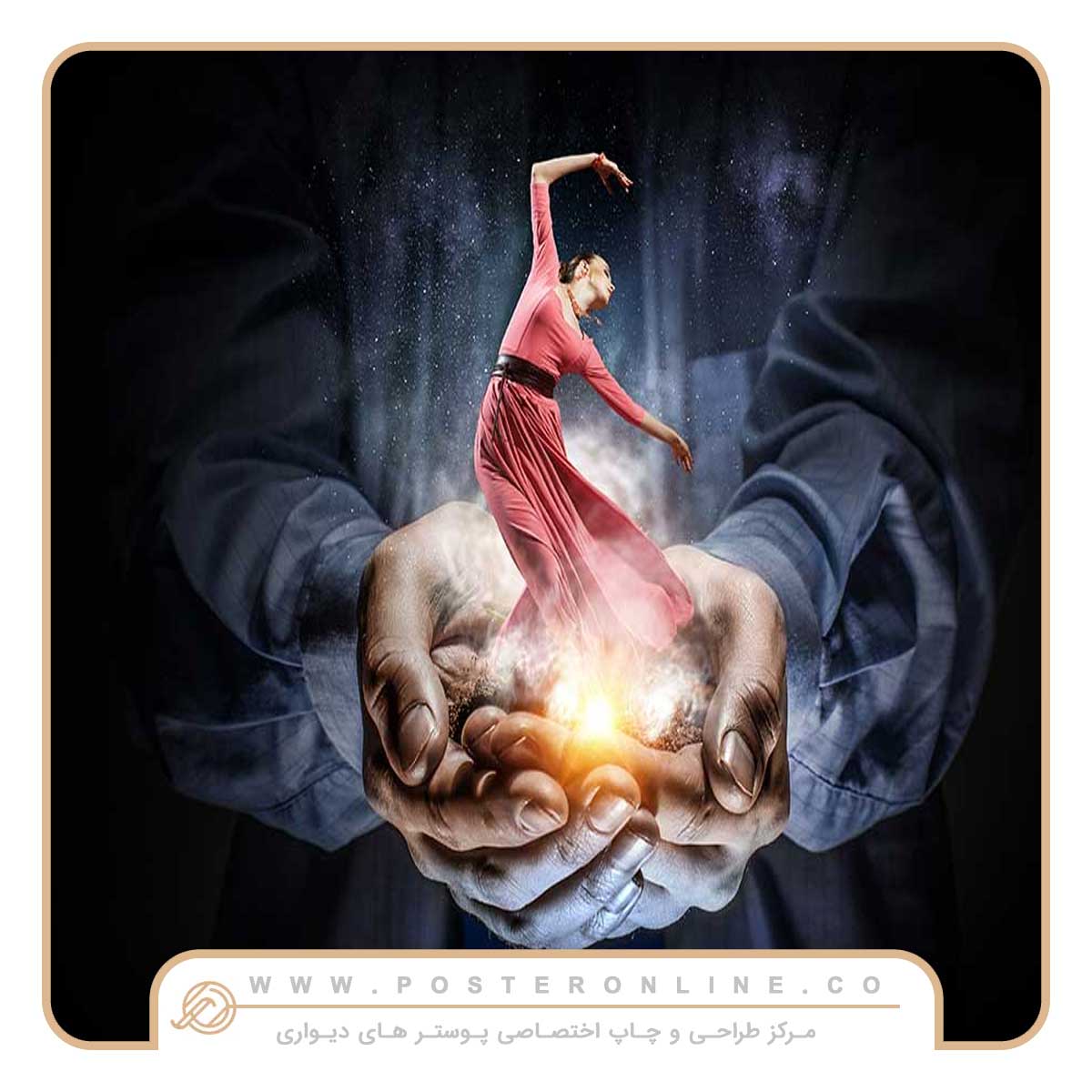 طرحی ایدهآل برای ست شدن با مبلمان و میزهای با رنگهای خنثی مانند سفید، خاکستری روشن، یا کرم و لوازم دکوری فلزی براق (نقرهای یا طلایی) و شیشهای است. با خطوط مواج و درخششهای ظریف، این پوستر دیواری حس آرامش و عمق را به ارمغان میآورد و هر نگاهی را به خود خیره میکند.