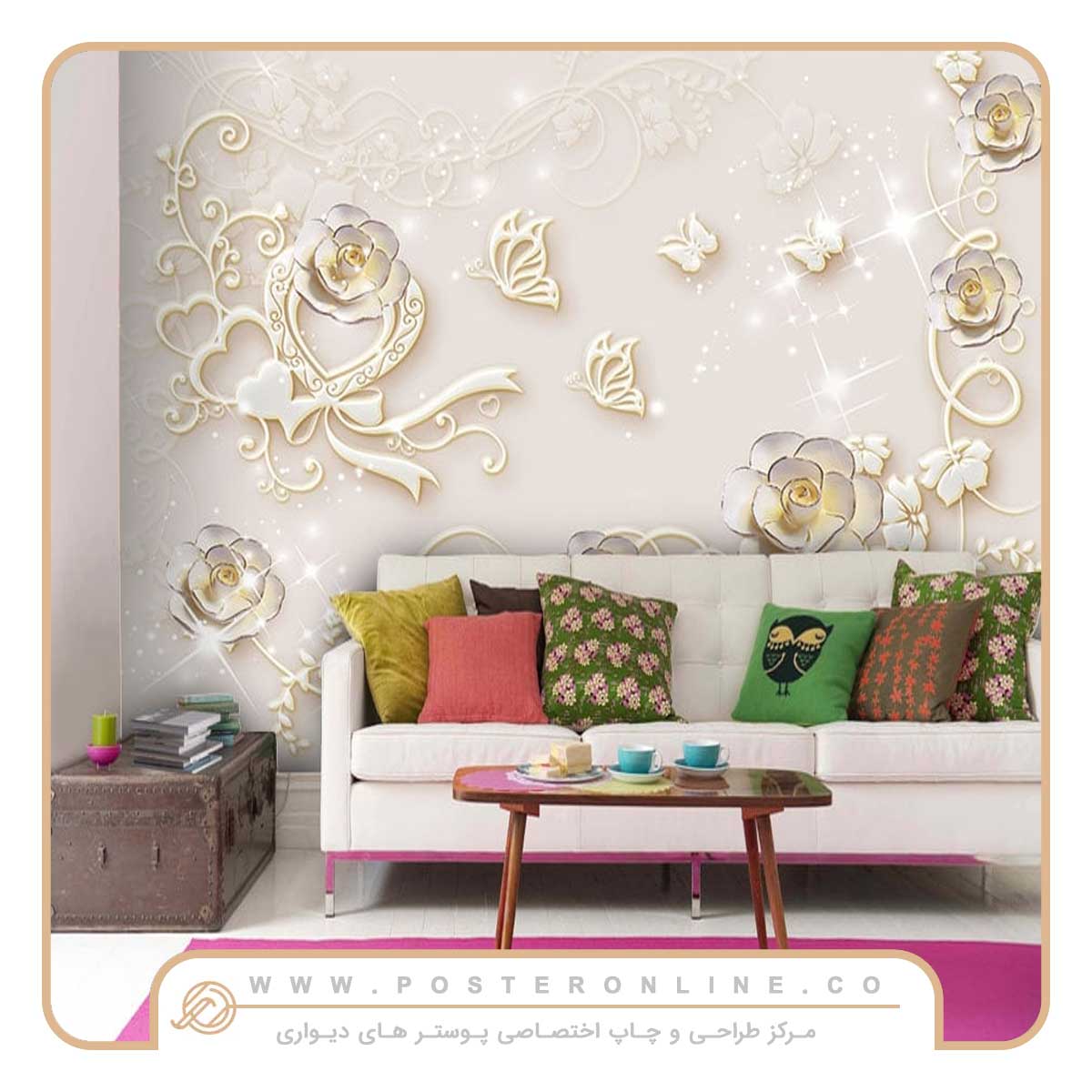 جزئیات سه بعدی و درخشش متالیک این طرح، تجربهای بصری متفاوت را ارائه میدهد که گویی گلها از دیوار بیرون آمده و با نور بازی میکنند. این پوستر دیواری لوکس، انتخابی ایدهآل برای فضاهای زیر است: