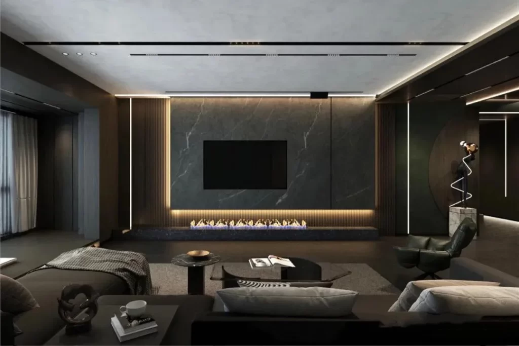 - ترندهای دیوار پشت تلویزیون مدرن در سال ۲۰۲۵